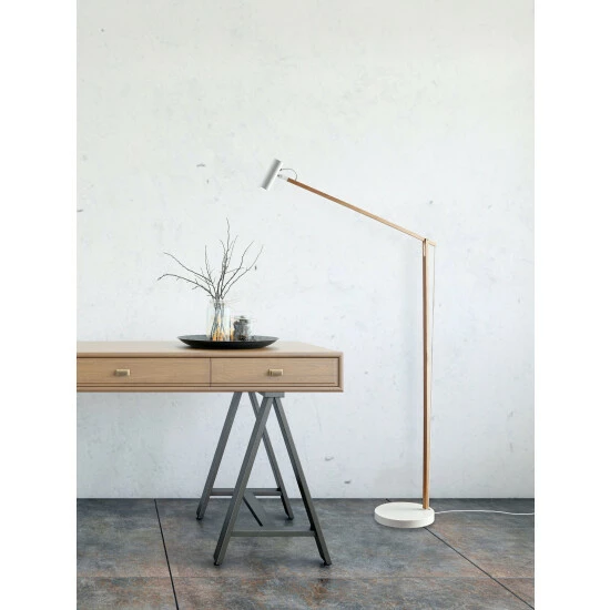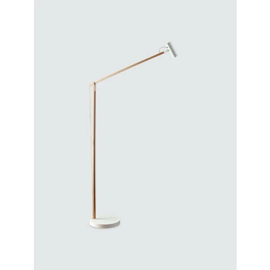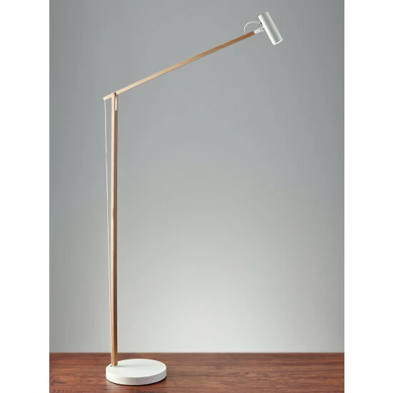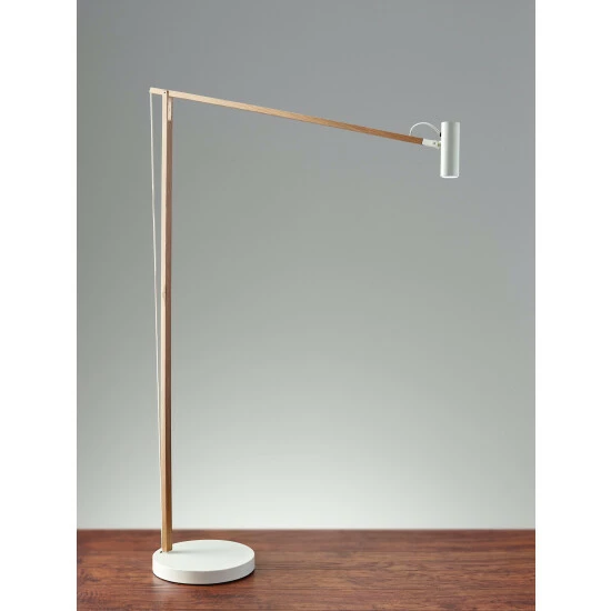 A flexible task light, the Crane LED Floor lamp has a long arm that is easy to adjust in height and rotation. The sensitivity to the user as well as the function of the product results in a lamp that is easy to use. A brushed gold finish, accented with a black fabric cord communicates a polished, contemporary look. The Crane makes use of its black cloth covered cord and a special spring hidden in the base to balance its arm at any angle you choose to pose it. The light source is equally spare, a small but powerful, energy-efficient 5 Watt LED light source; the simple 4-way touch dimmer switch is located at the end of the shade. The included 5W LED produces 520 lumens of warm light (3,000K at 80 CRI) and is rated to last over 30,000 hours.