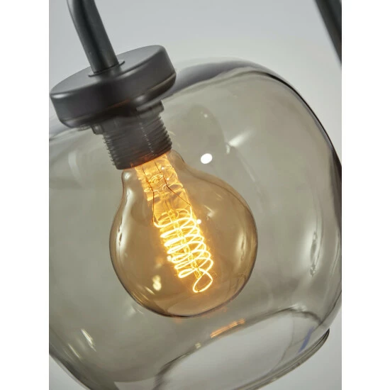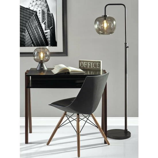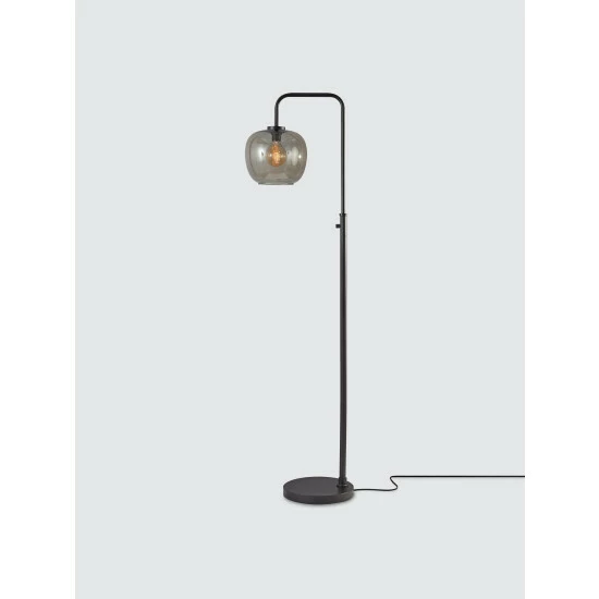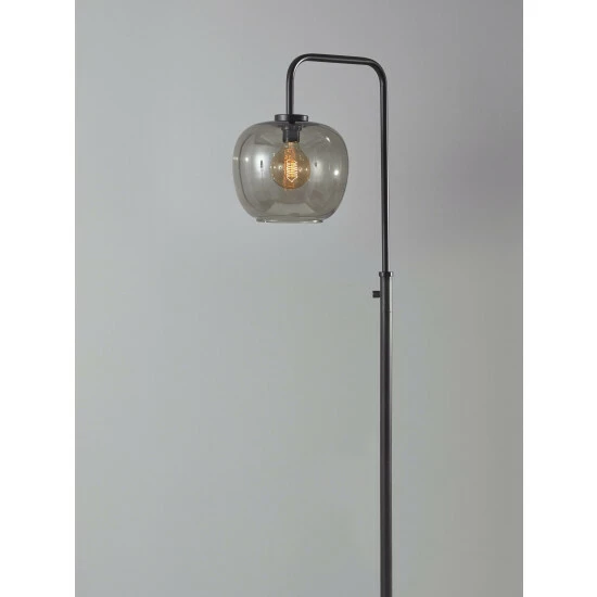 Set the mood with the Ashton Floor Lamp. Included with this purchase is a vintage-style Edison bulb with a unique globe shape that mirrors the shape of a beautiful smoked glass shade. A matte black metal finish and a black fabric covered cord adds contemporary edge with both hardwire and plug-in capabilities.
