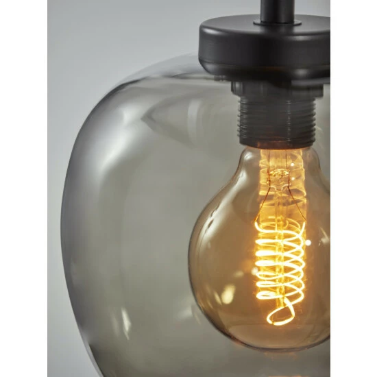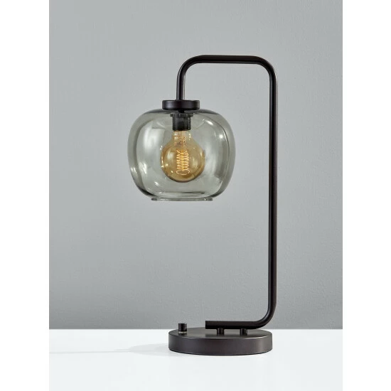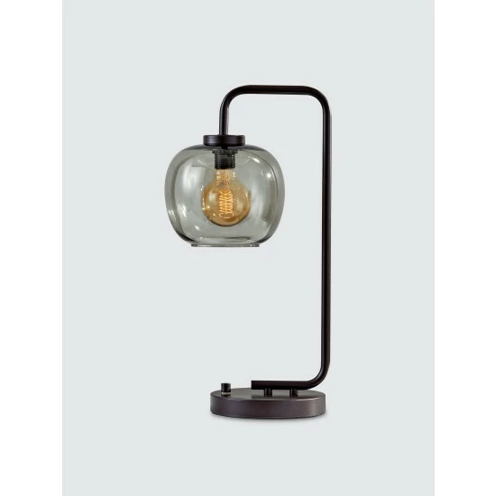 Set the mood with the Ashton Table Lamp. Included with this purchase is a vintage-style Edison bulb with a unique globe shape that mirrors the shape of a beautiful smoked glass shade. A matte black metal finish and a black fabric covered cord adds contemporary edge with both hardwire and plug-in capabilities.