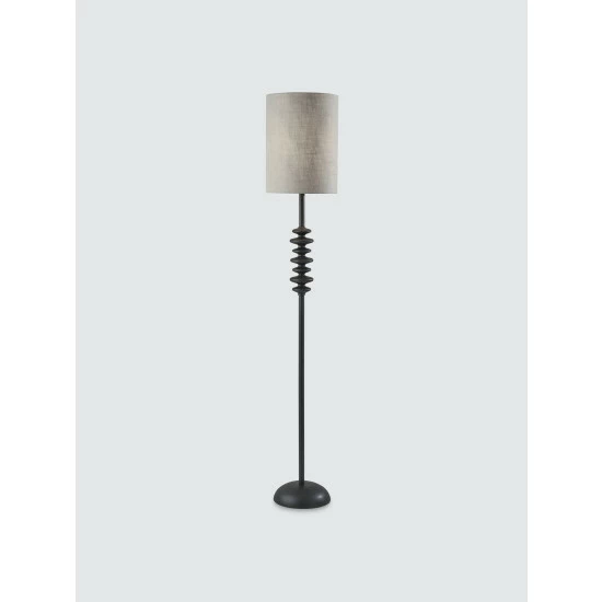 Bring elegant, contemporary style to your space with the unique silhouette of the Beatrice Floor Lamp. This lamp has a compact footprint that fits conveniently in corners or beside furniture. It features a dome-shaped base to ensure stability and the black matte finish continues up the distinctive stem, which includes seven round designs of varying sizes. The lamp is topped by a tall, taupe textured fabric drum shade to softly diffuse light. Operated by a rotary socket switch to easily turn the lamp on or off, it is also powered by an extra long black cord. Complete your décor with the Beatrice Floor Lamp.
