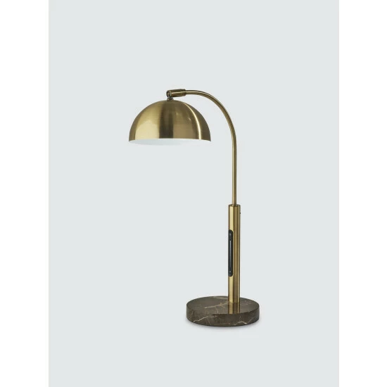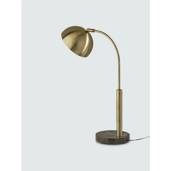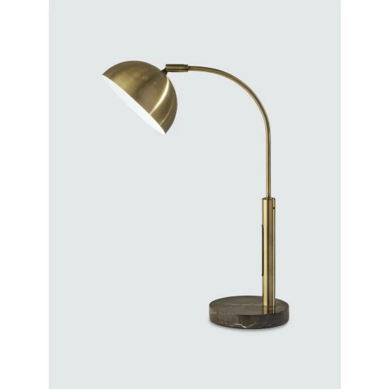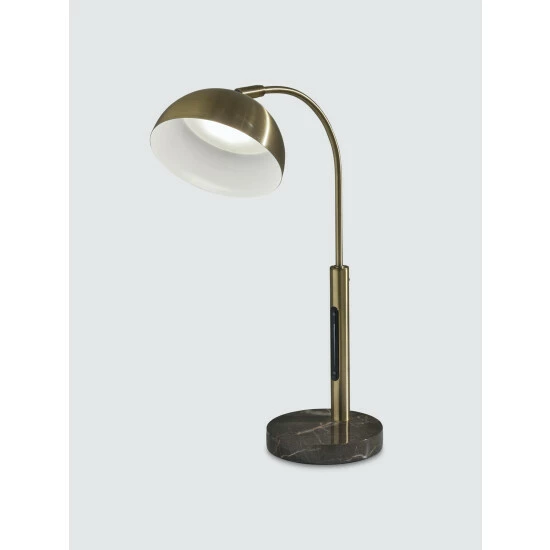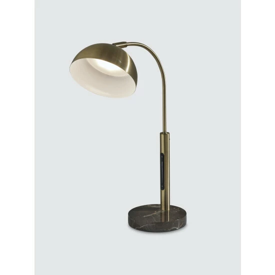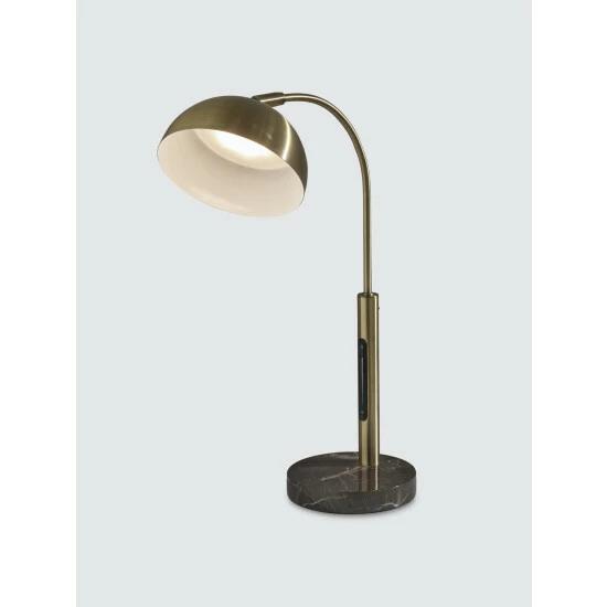 Displaying a modern silhouette and elegant blend of materials, the Bolton LED Desk Lamp adds functional task lighting to your space. An antique brass pole and matching arcing stem are anchored securely by a round marble base. Topping the stem is a dome-shaped antique brass shade with an articulation point, allowing you to direct the light wherever it’s needed. A convenient touch switch located on the pole gives you full control of the lighting brightness and color temperature at the touch of a finger, while the integrated LED light is softened by a frosted diffuser. Complete your décor with the very modern Bolton LED Desk Lamp.