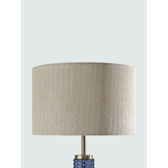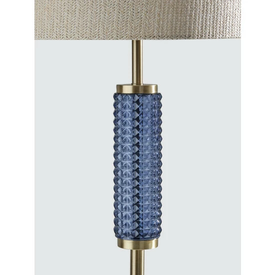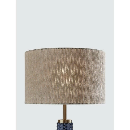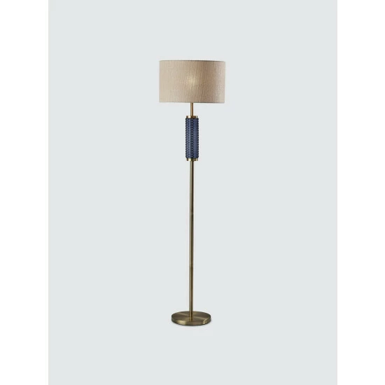 The Delilah Floor Lamp brings a warm, coastal touch to any room or living area. This lamp features a tall cylindrical body made of blue textured glass supported by an antique brass metal frame. It is topped by a drum shade made of woven paper for a clean, natural look. Operated by a three-way switch, the lamp’s lighting level is easy to adjust between high, medium, low and off, so you can always select the ideal lighting for your needs. Use this table lamp individually to decorate your space or pair the lamp with a coordinating version to enhance the aesthetic. Complete your home’s décor with the refreshing Delilah Floor Lamp.