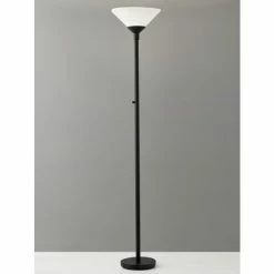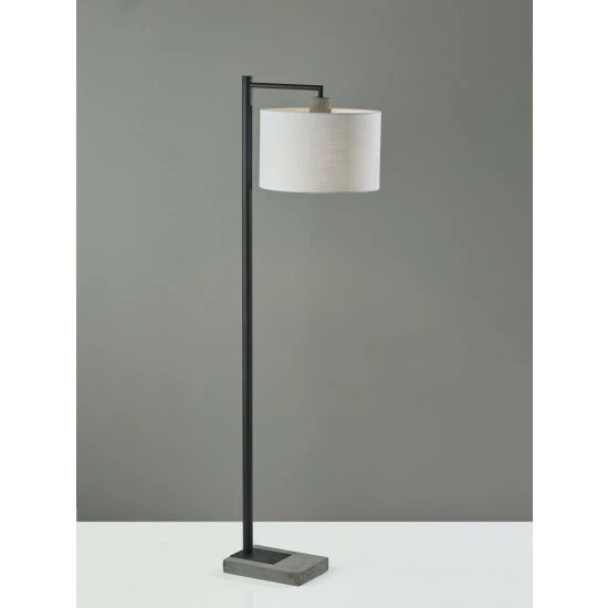 The Devin Floor Lamp is the perfect way to soften an industrial styled room. A sharp silhouette is paired with warm grey cement accents and a white textured fabric shade. A simple rotary switch on the socket turns the lamp on, revealing the lampshades beautiful texture. Bulb is not included.