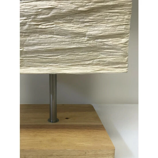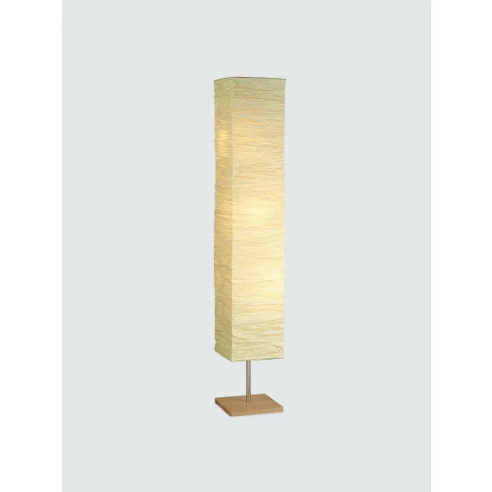 The Dune Floor lamp adds an accent of nature as well as illumination to any room. The natural wood base with satin steel accents contrasts with the texture of the collapsible natural crinkle paper shade. The shade diffuses the light from the three stacked bulbs inside. This lamp has a clear cord and is smart outlet compatible. Bulbs are not included.