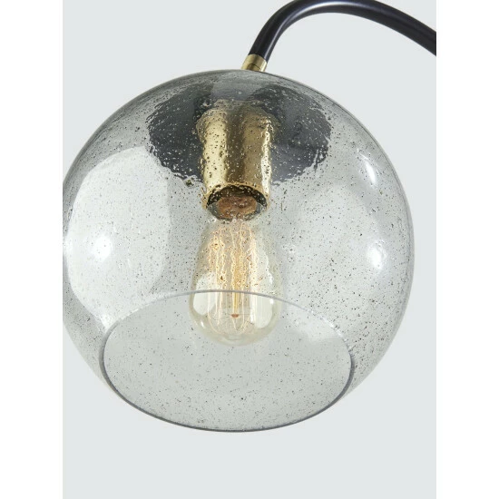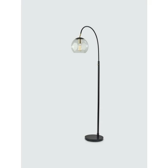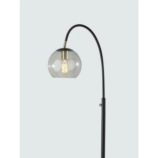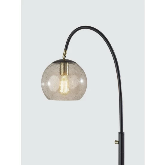 Warm, rustic elements like vintage-inspired glass and a dark bronze finish with brass accents are reimagined with a modern flair in the Edie Floor Lamp. With a compact footprint that conveniently fits behind or beside furniture, the lamp’s speckled glass orb shade casts a warm light and is ideal for highlighting an Edison-style light bulb. This lamp also features an articulation point at the base of the shade, allowing you to direct the light wherever it’s needed. With clean and simple style lines, the slender, arcing metal stem in a bronze finish leads to the sturdy, round base. You can easily turn the lamp on or off with the brass rotary switch located on the base, while the lamp is powered by a long clear cord. Complete your home’s décor with the vintage Edie Floor Lamp.