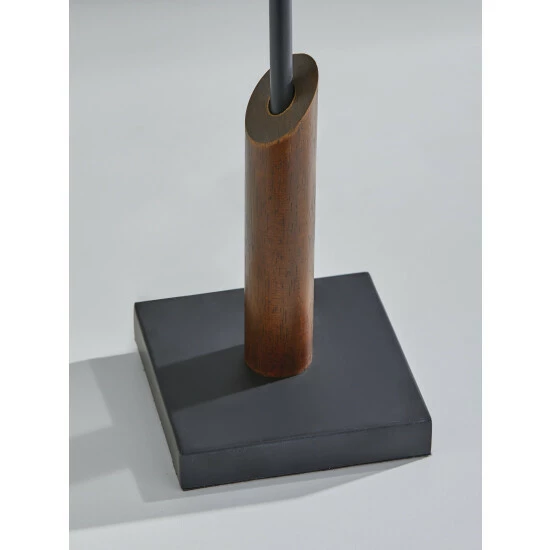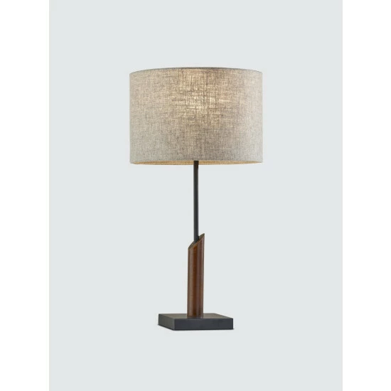 Crafted from walnut wood and black metals, the Ethan Table Lamp is a versatile, mid-century modern style that looks good in any space. A natural textured fabric shade balances out the look. With a 5.5 square base, this lamp has a compact profile to sit wherever light is needed. A black fabric covered cord comes out elegantly from the base. Bulb is not included.