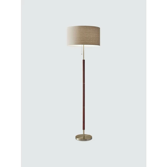 A good candidate for urban or mid-century settings, the Hamilton floor lamp has a modern form warmed by a walnut eucalyptus wood and antique brass finishes. A 150 Watt incandescent bulb or an equivalent CFL shines beautifully through a natural, linen fabric shade. A brass pull chain switch turns the lamp on and off. This lamp has a clear cord and is smart outlet compatible. Bulb is not included.