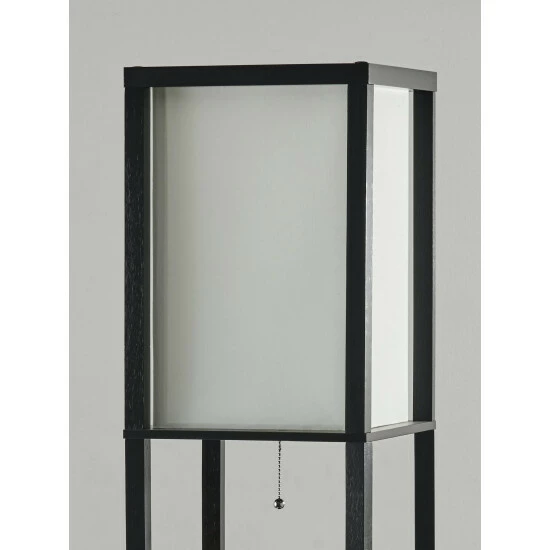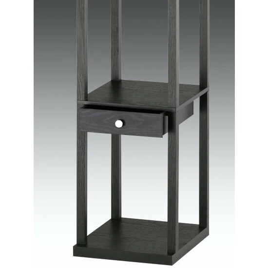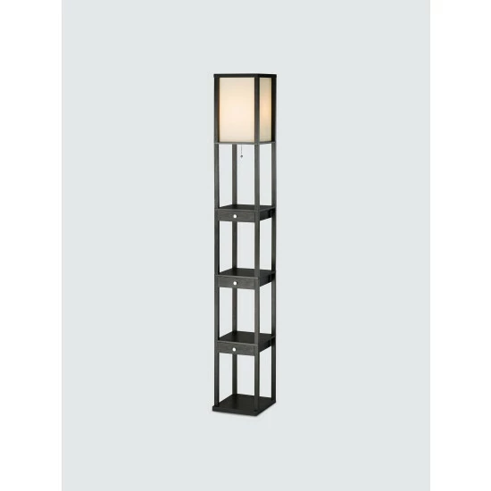 The Murray three-drawer shelf lamp functions overtime delivering three storage drawers while displaying trinkets and illuminating a room. And it does it all with a fashionable black MDF frame and off-white cotton shade easily suited for contemporary or transitional décors. A brushed steel pull chain switch turns the lamp on and off. This lamp has a clear cord and is smart outlet compatible. Bulb is not included.