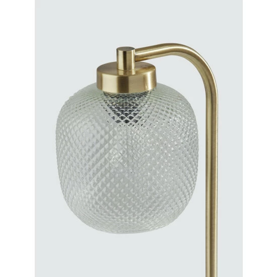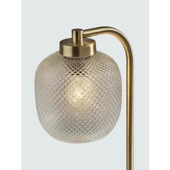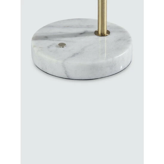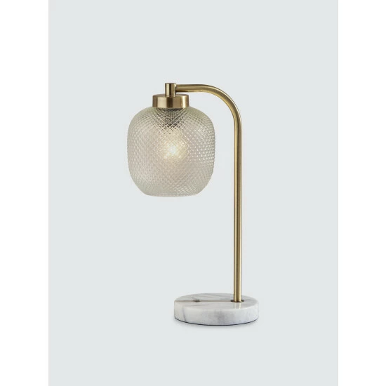 The sophistication of industrial accents and premium materials gleams in the beautifully crafted Natasha Table Lamp. The humble design combines a round marble base with a simple curved arm and a clear textured glass shade. This table lamp helps create the perfect ensemble for your bedroom, living area or office. The lamp’s stem in an antique brass finish leads to a cylindrical glass shade that is textured to softly diffuse the light. With a discrete touch switch located on the white marble base, it is easy to turn the lamp on or off with the touch of a finger. Complete your décor with the chic Natasha Table Lamp.