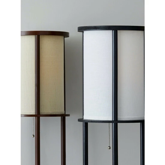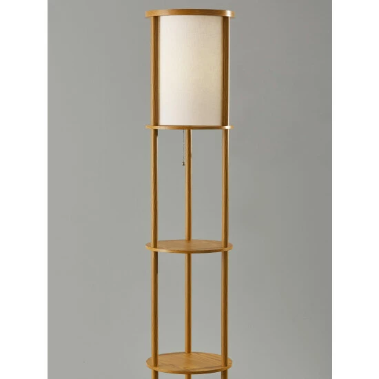 The Stewart Round Shelf Floor Lamp is a sensible addition to soft contemporary decor offering functional storage and generous illumination. A wood finish makes the Stewart Floor Lamp an easy accessory to integrate into Scandinavian or modern styled living rooms, bedrooms or home offices. Its compact profile is perfect for smaller apartments or any living space that requires a dual-purpose accent. An off-white fabric shade reveals an elegant texture when lit. With 2 storage shelves and functional wire clips that create a clean look, this item is a no brainer.