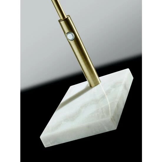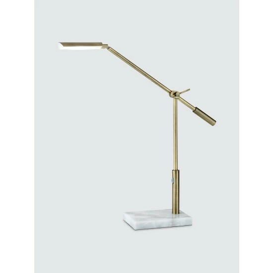Comprised of antique brass and white marble, the Vera LED Desk Lamp reveals a striking mix of industrial and elegant designs. 500 lumens of strong, energy efficient LED task lighting can be dimmed using a touch dimmer switch and also directed where it is needed with an adjustable shade and arm. This full spectrum LED light emulates natural daylight to ease the strain on your eyes. This lamp has a black cord and is not smart outlet compatible. The LED lights are integrated into the lamp and are not replaceable, but they last 50,000 hours.