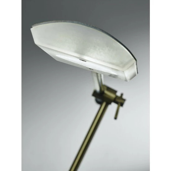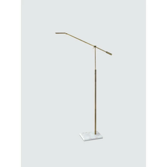 Comprised of antique brass and white marble, the Vera LED Floor Lamp reveals a striking mix of industrial and elegant designs. 500 lumens of strong, energy efficient LED task lighting can be dimmed using a touch dimmer switch and also directed where it is needed with an adjustable shade and arm. This full spectrum LED light emulates natural daylight to ease the strain on your eyes. This lamp has a black cord and is not smart outlet compatible. The LED lights are integrated into the lamp and are not replaceable, but they last 50,000 hours.