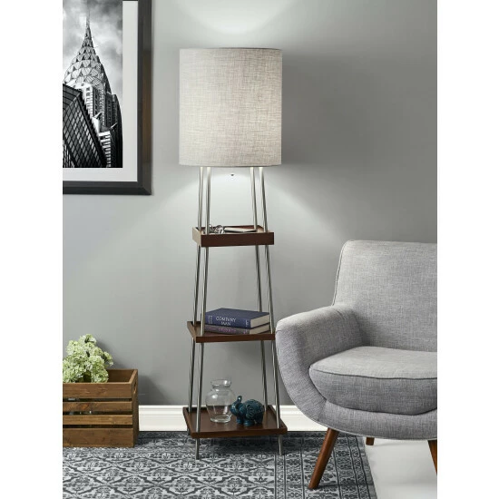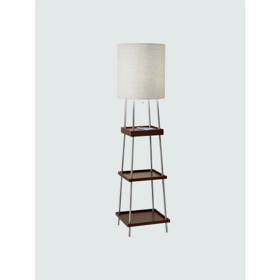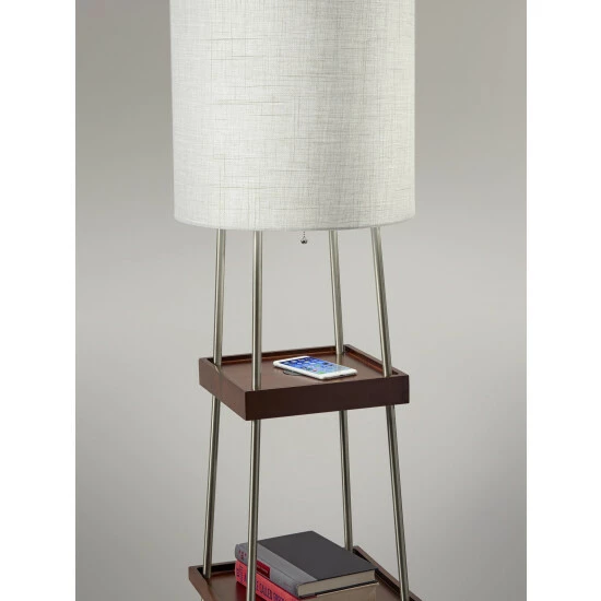 The Henry AdessoCharge Shelf Floor Lamp is a multi-functional piece of furniture and lighting that includes a wireless charging pad with Qi inductive charging technology integrated into the top shelf. All AdessoCharge products are Qi certified by the Wireless Power Consortium. This product has been tested and verified to be safe and in compliance with the Qi standard. The AdessoCharge pad supports 5W charging on contact with the charging pad, which gets your phone from 0% to 100% in just 4-5 hours, depending on your phone model. A USB is located on the base and can charge up a second device simultaneously. AdessoCharge is unique in that you can use the AdessoCharge pad, the USB and the light all at the same time with maximum efficiency of all three. With all of this added functionality, you also get three beautiful walnut wooden storage shelves.