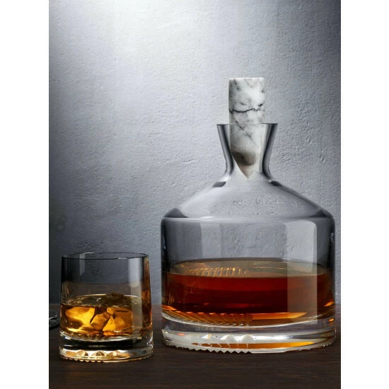 With its name derived from the Gaelic word meaning Scotland, the NUDE Alba set pays tribute to the spiritual home of whisky. Sleek and modern, the crystalline bottle features a hand engraved, deconstructed tartan pattern adorning the base and a circular stopper, which gently tilts in the conical neck — an invitation to keep it pointing towards Scotland. It is paired with two whisky glasses characterised by a heavy-bottomed, tapered silhouette and the matching tartan motif.