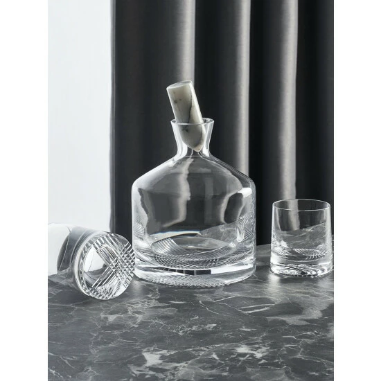 Made from lead-free crystal, the Alba set of whiskey glasses pays tribute to Scotland — the spiritual home of whiskey — with its cleverly deconstructed and hand engraved tartan pattern. The distinctive tapered shape and the heavy commanding base make it an instant modern classic.