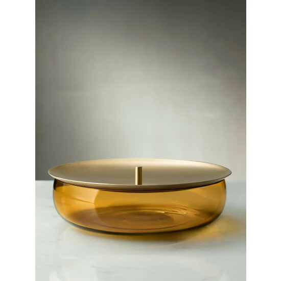 Both playful and indicative of the brand’s enthusiasm for storytelling, this Beret storage box by NUDE boasts a medium amber-hued glass container and a brass lid — a nod to France’s most famous hat. Present it solo or alongside accompanying designs for an added layer of personality.