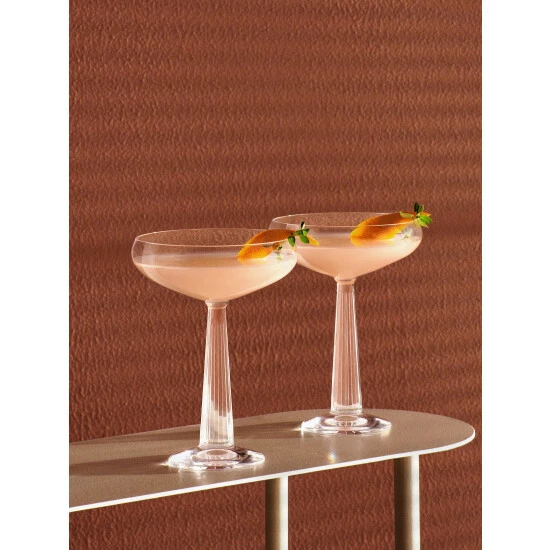 A brand-new addition to the Big Top collection by NUDE, these coupe glasses offer a refreshingly modern take on the collection’s circus theme. The pure and refined silhouette is cast from clear lead-free crystal and typified by a generous bowl, as well as a tapered stem etched with a raised linear pattern for a delightful, tactile finish. Presented in a set of two.