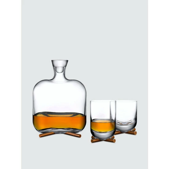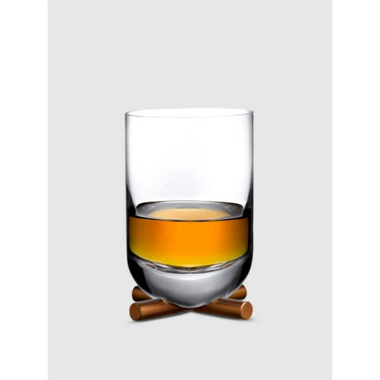 The Camp whiskey glass by NUDE is a study in geometry, proportion and composition. The clear lead-free crystal construction is set atop an x-shaped brass base which recalls the soothing warmth of burning campfire logs — the perfect match for savouring the warmth of whiskey.