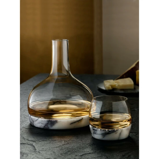 Part of the Chill collection by NUDE, this whiskey tumbler is a refined and practical choice. Crafted from lead-free crystal, the modern, minimal glass rests atop a marble base which helps to maintain an optimum temperature of your drink — no ice cubes needed.