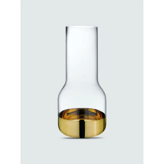 The dramatic, layered look of this tall Contour vase by NUDE accentuates the luminosity of lead-free crystal — contrasted here with a glossy, golden base. The change in glass density, as it nears the rim, intensifies the fascinating effect.