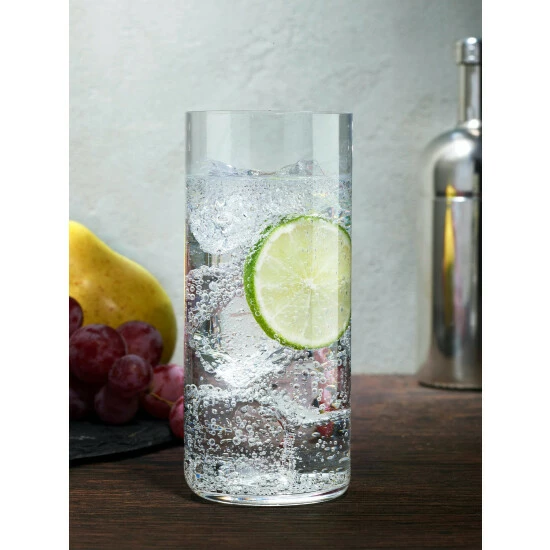 Recognizable for the streamlined contours and distinct graphic markings etched into the crystalline surface, the Finesse Grid series presents this set of longdrink glasses. The result is a piece that will slot into your glassware edit seamlessly, while still making an impact. Presented in a set of four.