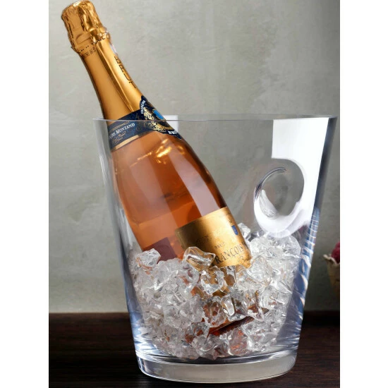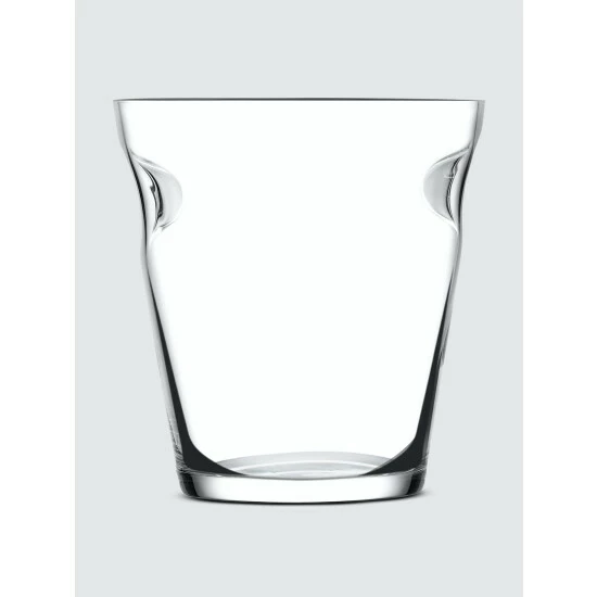 With a strong silhouette that almost defies its delicate crystalline glass composition, the Glacier magnum champagne cooler by NUDE takes both functionality and aesthetics into account. Sharp yet comfortable, it presents a pair of elegant hand-pressed dimples that ensure a reliable grip when handling the ice.