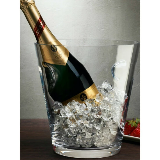 Simple yet striking, elegant yet functional — the Glacier wine cooler by NUDE ensures both ease of use and eye-catching appeal. Cast from clear crystalline glass and striking in its proportions, the pure design is decorated with a pair of hand-pressed dimples for a reliable grip when handling the ice.