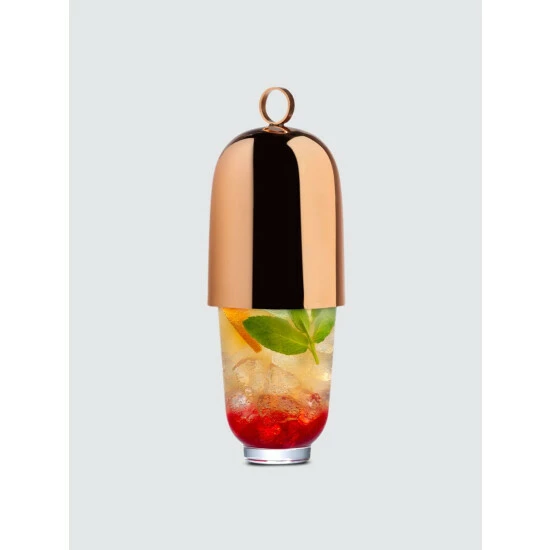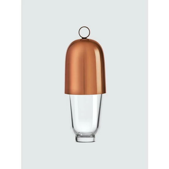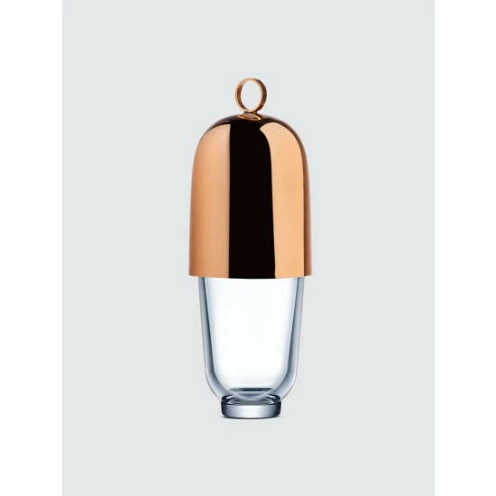 The Hepburn collection by Brad Ascalon for NUDE presents a fresh, modern take on classic barware. Crafted from lead-free crystal, this cocktail shaker comes complete with a metal top featuring a highly polished copper finish. With its sweeping curves and a textural contrast, this design is proof that the traditional glassware works beautifully in a contemporary context. Long drink, low ball and martini glasses are also available.