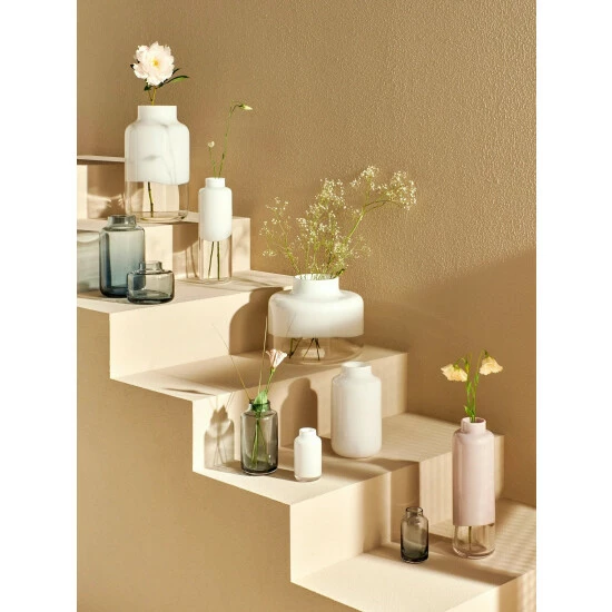 The smallest from the series, this Magnolia vase by NUDE bears all the hallmarks of the collection’s signature play on colour, shape and geometry. The clear crystalline base is livened up by a wash of blue and crafted using time-honoured glassmaking techniques, resulting in subtle variations and individual characteristics.