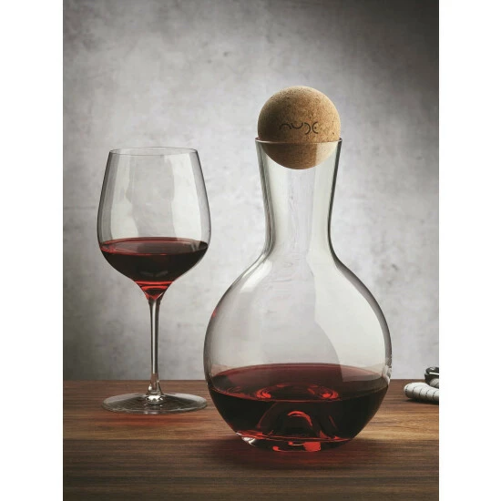 Destined to elevate a simple moment into a memorable occasion, this unique set showcases the glass artistry and craftsmanship at their highest level. The NUDE Vintage wine decanter is defined by its well-balanced proportions and a playful finishing touch: the circular cork stopper. Meanwhile, the NUDE Terroir wine glasses are designed for optimal taste and flavour enhancement, and defined by their minimal silhouette and a dynamic drop that flows beautifully into the stem. Cut from pure lead-free crystal, it’s a delightful choice for wine novices and connoisseurs alike.