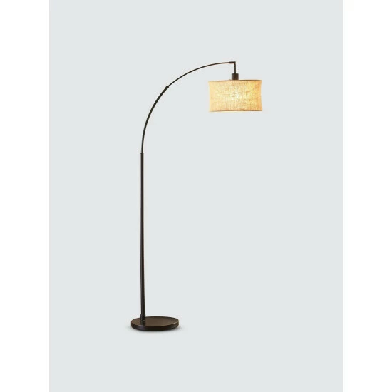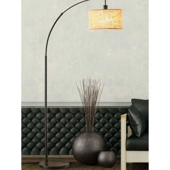Illuminate your living space with this Burlap Arc Floor Lamp. Featuring a modern yet traditional look, it adds style to any room in the home. The bronze floor lamp has a rotary switch for easy on/off and it uses one 150 W bulb. Easy to assemble.